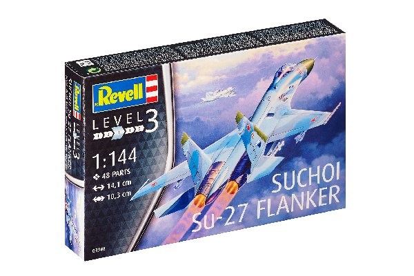 Model set of the Su-27 flanker, it is considered one of the best fighter jets in the world. 1/144 scale. 48 items. Length 14.1 cm. Suitable from 10 years.